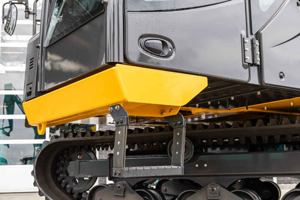 The 11.5-ton KATO crawler carrier, equipped with 700-millimeter-wide rubber tracks, delivers 190 hp of engine power, low fuel consumption, and a maximum travel speed of 12 km/h. The 360° rotating upper structure significantly reduces damage to the soil structure.